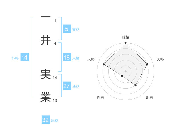 一井 実業さんの総格は32画の5点!