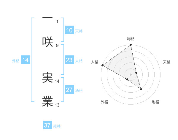 一咲 実業さんの総格は37画の5点!