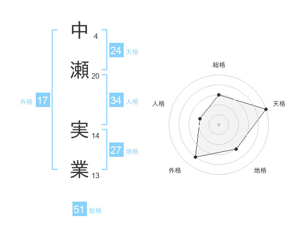 中瀬 実業さんの総格は51画の3点!