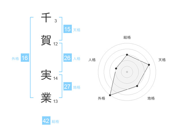 千賀 実業さんの外格は16画の5点!