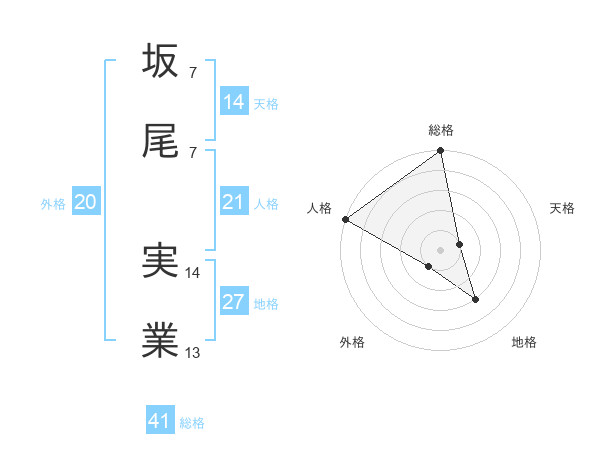 坂尾 実業さんの総格は41画の5点!