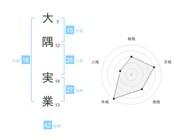 大隅 実業さんの外格は16画の5点!