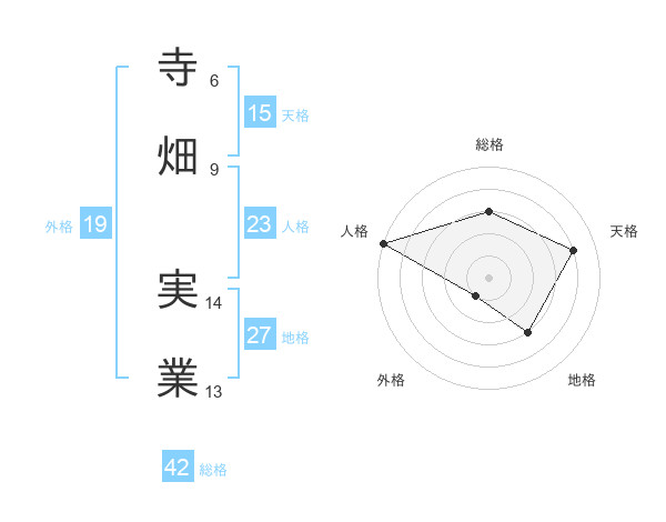 寺畑 実業さんの総格は42画の3点!