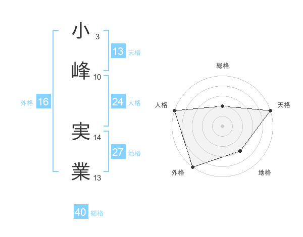 小峰 実業さんの天格は13画の5点!