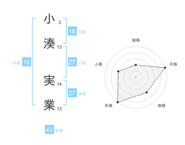 小湊 実業さんの天格は16画の5点!