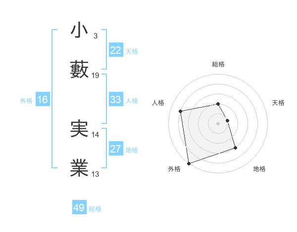 小藪 実業さんの天格は22画の1点!