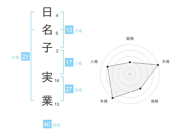 日名子 実業さんの総格は40画の2点!