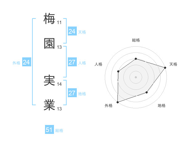 梅園 実業さんの総格は51画の3点!
