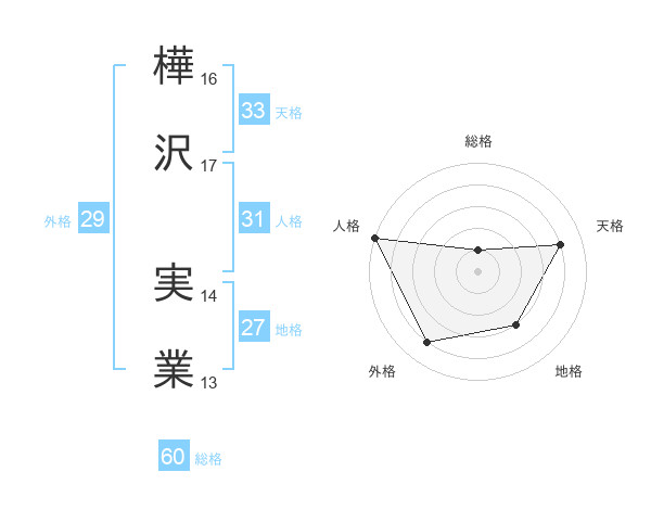 樺沢 実業さんを姓名の画数から五運を鑑定