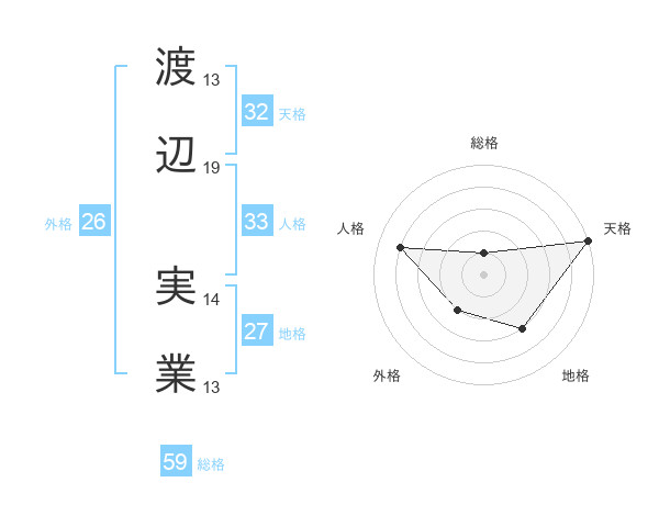 渡辺 実業さんを姓名の画数から五運を鑑定