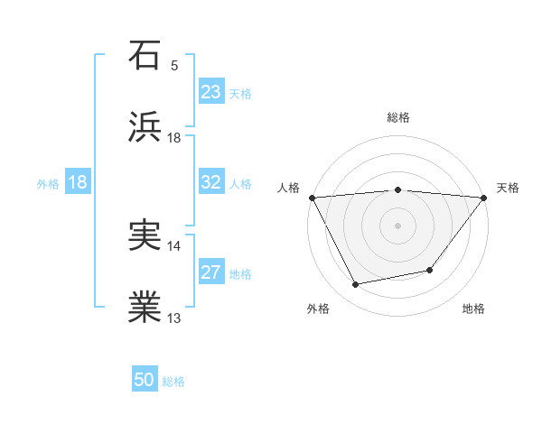 石浜 実業さんの天格は23画の5点!