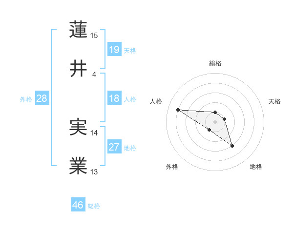 蓮井 実業さんの総格は46画の1点!