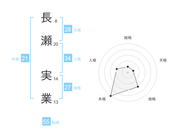 長瀬 実業さんの総格は55画の1点!