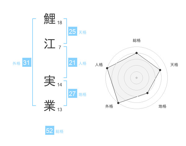 鯉江 実業さんを姓名の画数から五運を鑑定
