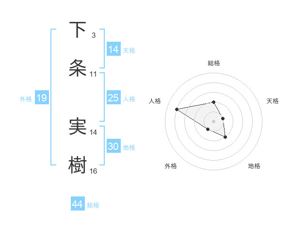 下条 実樹さんの総格は44画の2点!