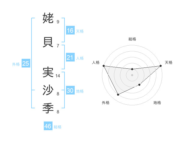 姥貝 実沙季さんの外格は25画の4点!