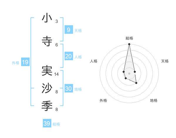 小寺 実沙季さんを姓名の画数から五運を鑑定