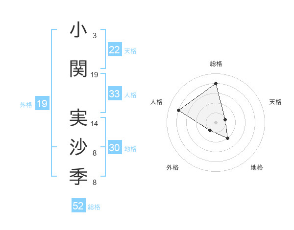 小関 実沙季さんを姓名の画数から五運を鑑定