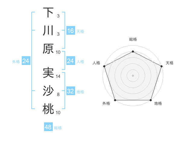 下川原 実沙桃さんの外格は24画の5点!
