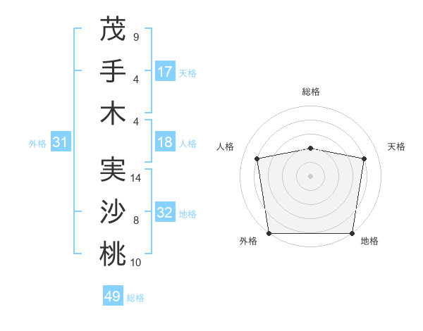 茂手木 実沙桃さんの外格は31画の5点!