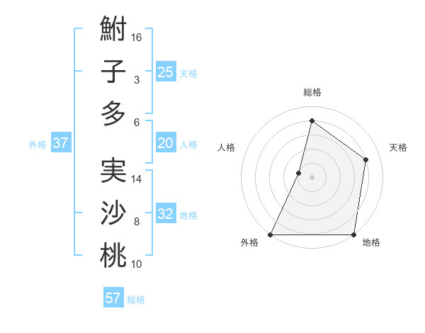 鮒子多 実沙桃さんを姓名の画数から五運を鑑定