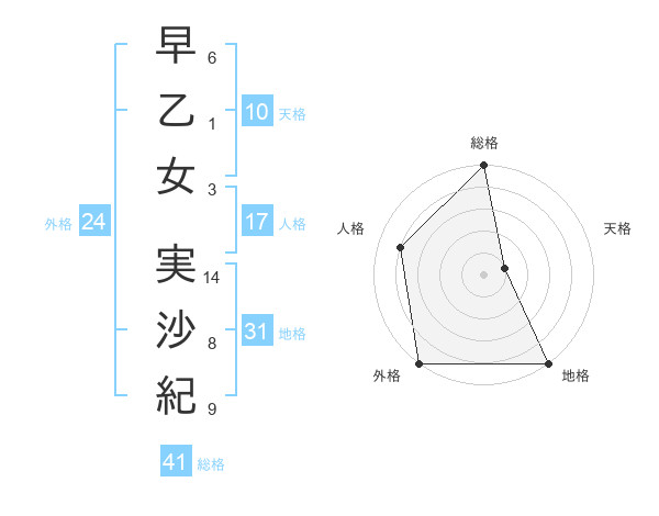 早乙女 実沙紀さんの総格は41画の5点!