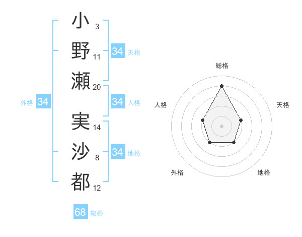 小野瀬 実沙都さんの総格は68画の4点!
