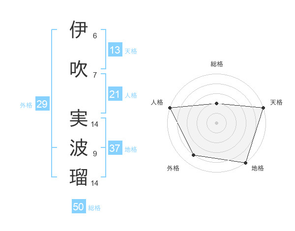 伊吹 実波瑠さんの総格は50画の2点
