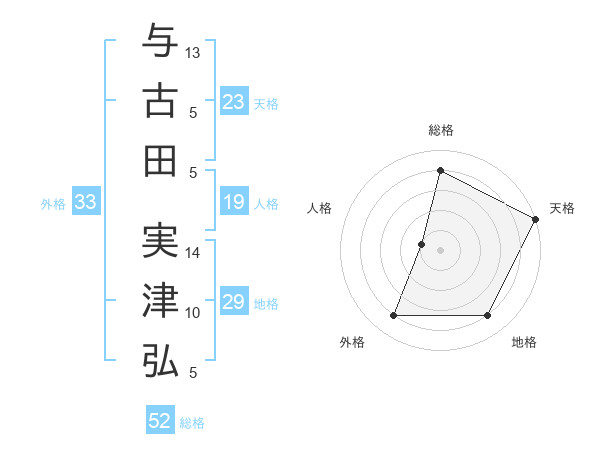 与古田 実津弘さんを姓名の画数から五運を鑑定