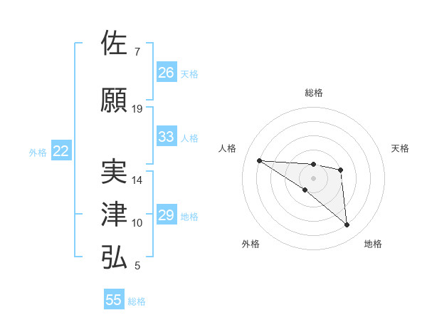 佐願 実津弘さんを姓名の画数から五運を鑑定