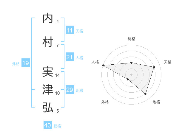 内村 実津弘さんを姓名の画数から五運を鑑定
