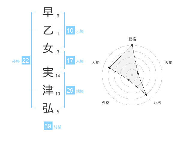 早乙女 実津弘さんを姓名の画数から五運を鑑定