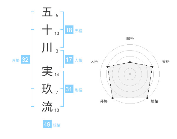 五十川 実玖流さんを姓名の画数から五運を鑑定