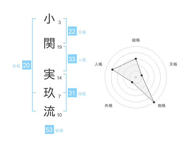 小関 実玖流さんの総格は53画の3点!