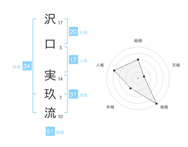 沢口 実玖流さんを姓名の画数から五運を鑑定