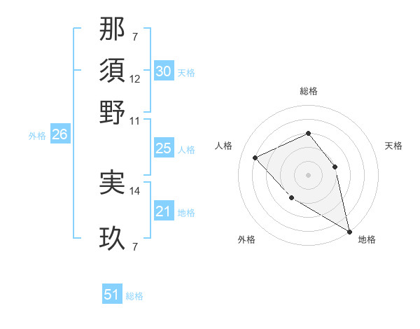 那須野 実玖さんの総格は51画の3点!