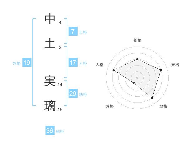 中土 実璃さんの天格は7画の4点!