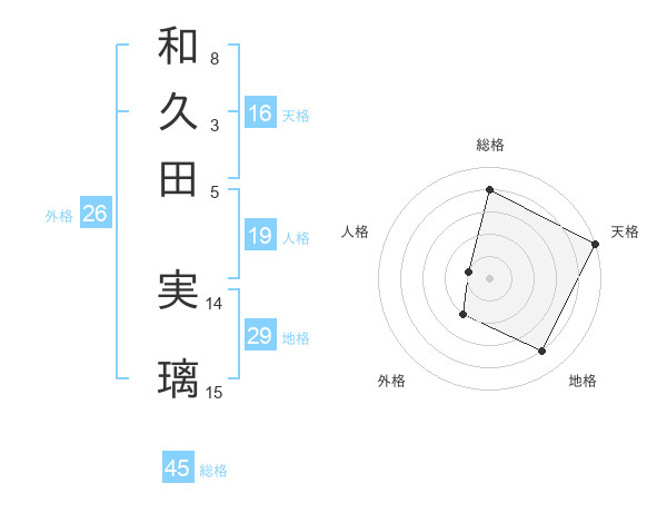 和久田 実璃さんを姓名の画数から五運を鑑定