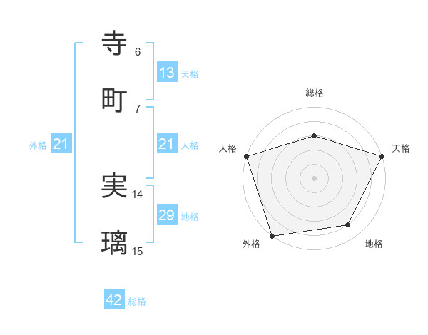 寺町 実璃さんの外格は21画の5点!