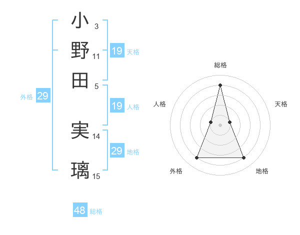 小野田 実璃さんの地格は29画の4点!