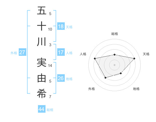 五十川 実由希さんを姓名の画数から五運を鑑定