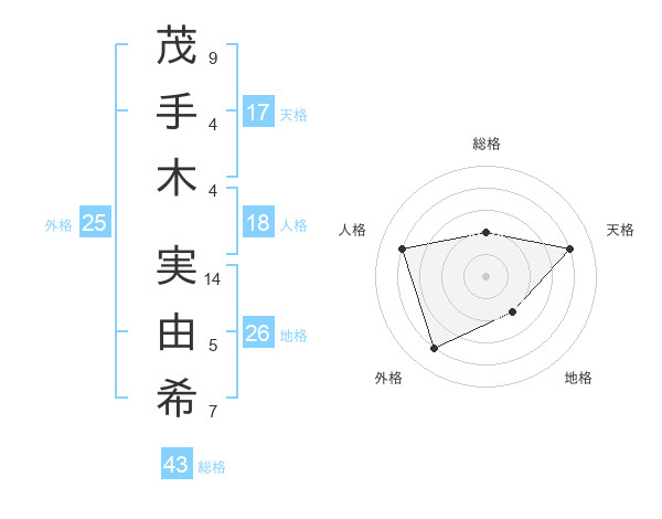 茂手木 実由希さんの天格は17画の4点!