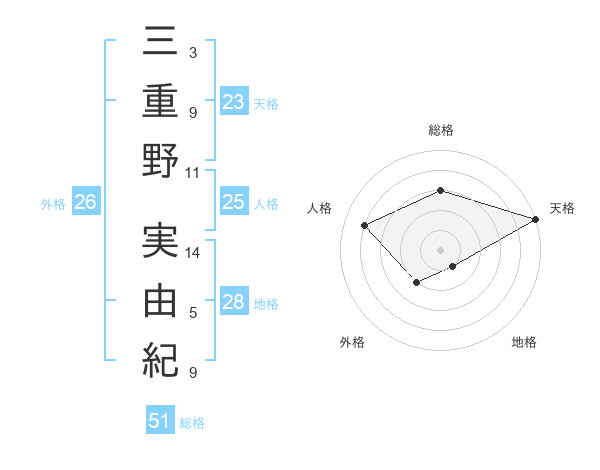三重野 実由紀さんを姓名の画数から五運を鑑定