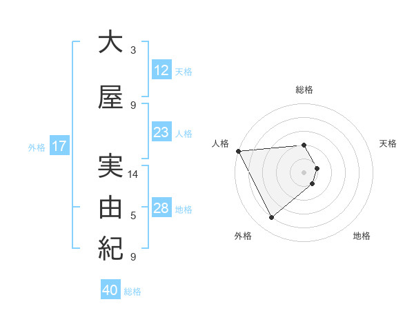 大屋 実由紀さんを姓名の画数から五運を鑑定