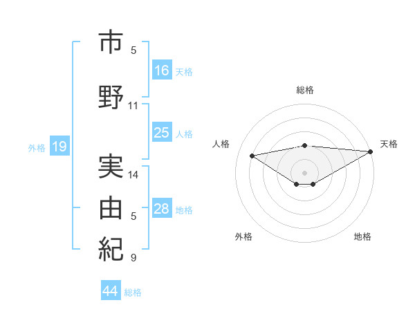 市野 実由紀さんの天格は16画の5点!