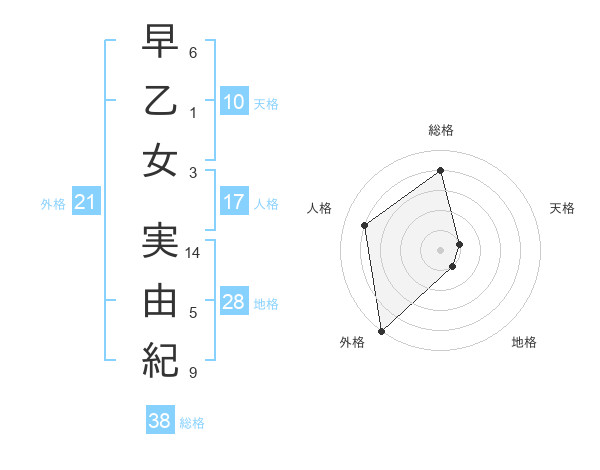 早乙女 実由紀さんを姓名の画数から五運を鑑定