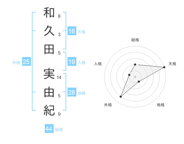 和久田 実由紀さんの天格は16画の5点!