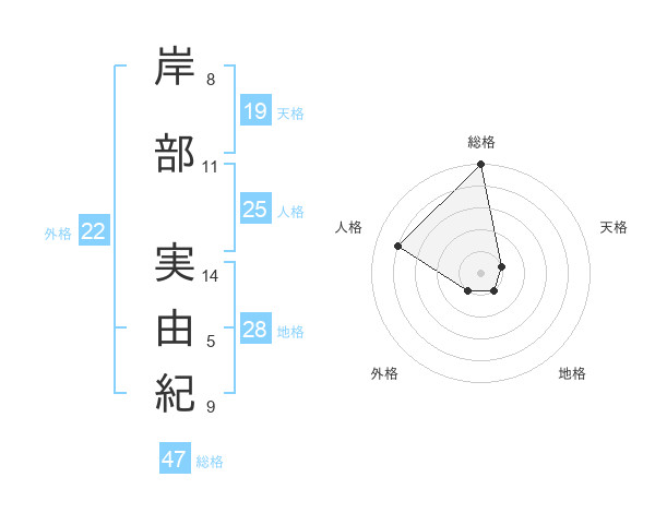 岸部 実由紀さんの総格は47画の5点!