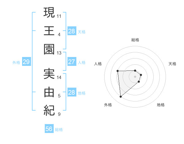 現王園 実由紀さんを姓名の画数から五運を鑑定