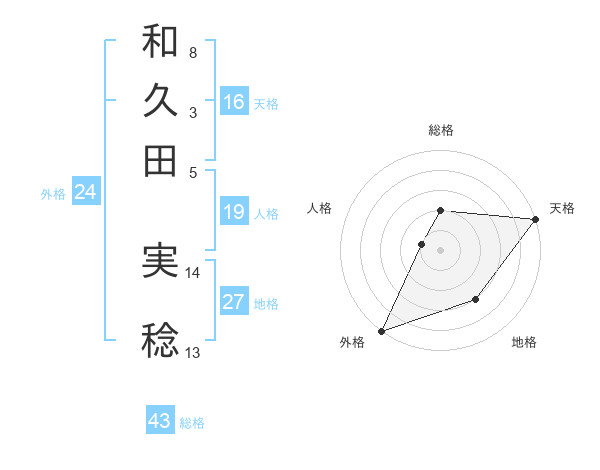 和久田 実稔さんを姓名の画数から五運を鑑定